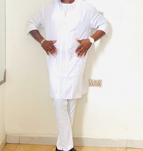 ............................................................................................................................................The base is a white long tunic paired with matching trousers, giving it a clean, dignified look. The choice of white conveys purity, peace, and celebration, often worn for special occasions or religious gatherings. Altogether, this outfit projects confidence and cultural pride, with the white-and-green combination carrying both symbolic and aesthetic weight. The pose with hands on hips further enhances the aura of self-assurance.