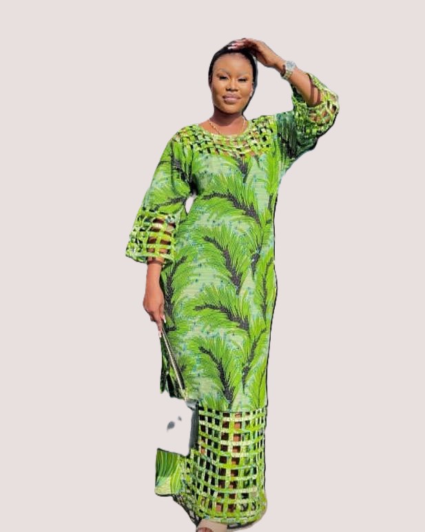 Step into effortless elegance with this stunning Women’s African Kaftan Dress, designed in a vibrant green leafy print that celebrates bold African fashion. This free‑flowing kaftan combines cultural charm with modern detailing, making it the perfect outfit for stylish women who value comfort and sophistication. Crafted from lightweight, breathable fabric, the dress features beautifully crafted lattice cut‑out sleeves and hem, adding a chic contemporary twist to its traditional silhouette. The relaxed fit drapes gracefully on all body types, making it ideal for church, parties, cultural events, and everyday luxury. Key Features - Vibrant green African print with elegant leafy patterns - Modern lattice cut‑out sleeves and hem for a stylish, feminine touch - Loose, flowing kaftan silhouette that flatters all body shapes - Soft, breathable fabric perfect for warm climates - Easy to style with handbags, jewelry, and sandals - Ideal for church, weddings, cultural celebrations, and casual outings Why This Dress Stands Out This kaftan blends traditional African design with contemporary fashion elements, offering a unique look that is both eye‑catching and comfortable. Whether you’re dressing up for a special event or elevating your everyday style, this piece delivers elegance with ease. SEO Keywords African women’s kaftan, green kaftan dress, African print dress for women, lattice sleeve kaftan, leafy print kaftan, women’s native wear, African fashion for women, free‑size kaftan dress, Nigerian women’s clothing.