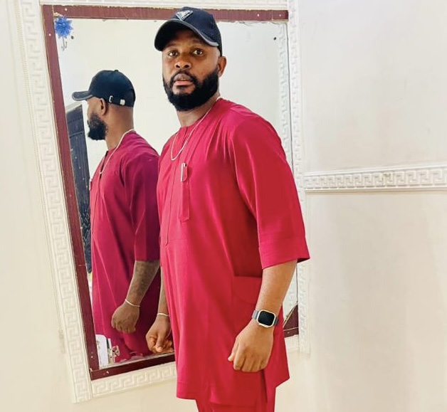 ............................................................................................................................................The person is dressed in a vibrant red tunic-style attire, paired with black sandals for a relaxed finish. The overall style is clean, confident, and culturally expressive.