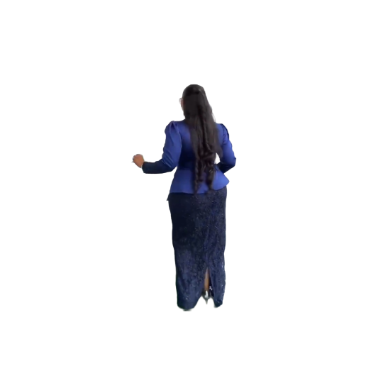 Royal Blue Satin & Lace Occasion Set Make a striking entrance with this luxurious royal blue two‑piece ensemble, crafted for women who love refined elegance with a modern touch. This outfit blends satin richness, delicate lace, and sculpted detailing—ideal for weddings, receptions, church events, and premium celebrations. Design Features • Satin V‑Neck Top The top features a smooth, lustrous satin finish with a flattering V‑neckline that adds sophistication and elongates the silhouette. • Lace Sleeves for Elegant Coverage Long lace sleeves bring a graceful, feminine touch while offering modest coverage without compromising style. • Statement Shoulder Flower A beautifully crafted floral appliqué sits on the left shoulder, adding a couture‑inspired accent that elevates the entire look. • Waist‑Defining Belt A matching belt with a circular buckle cinches the waist, creating a structured, flattering shape. • Coordinated Lace Maxi Skirt The long lace skirt flows elegantly, offering movement and texture that complement the satin top perfectly. • Styled Accessories (Lookbook Ready) Paired with a chic clutch, jewelry, and sunglasses, the outfit exudes confidence and high‑fashion appeal. Why Shoppers Love It - Perfect blend of satin luxury and lace elegance - Flattering silhouette for formal and semi‑formal occasions - Unique shoulder flower adds a couture touch - Ideal for women seeking modest, stylish, and premium event wear