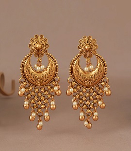 ............................................................................................................................................Elegant pearl drop earrings with gold finish – perfect for evening wear.