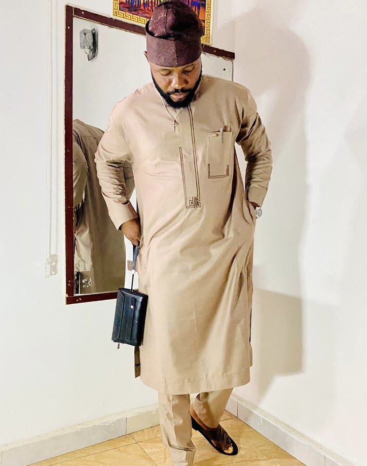 ............................................................................................................................................It consists of a beige-colored long tunic paired with matching trousers, creating a coordinated and dignified appearance. The tunic features a chest pocket, where a pen is neatly placed, adding a touch of practicality. Overall, the cloth reflects cultural pride and sophistication—simple yet stylish.