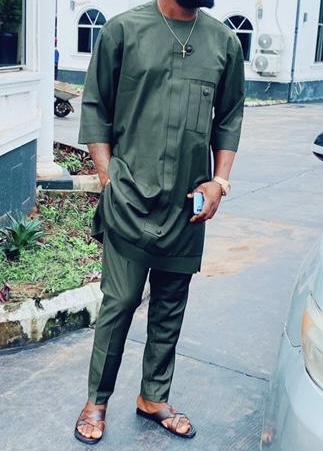 ............................................................................................................................................Giving it a unified and elegant appearance. The tunic and trousers are simple yet stylish, with the green color symbolizing freshness, vitality, and balance. Brown sandals complement the attire with a natural, earthy touch, while the necklace adds a personal and cultural accent. The dressing reflects confidence, cultural pride, and a relaxed sophistication—perfect for social gatherings or casual occasions. The harmony between the green attire and cap especially makes the look stand out, projecting both tradition and individuality.
