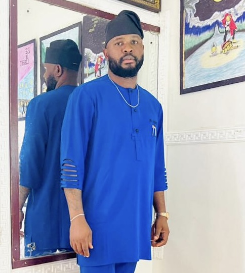 This dressing is a vibrant royal blue traditional outfit made from a smooth, finely woven fabric that gives it a bold and elegant presence.
